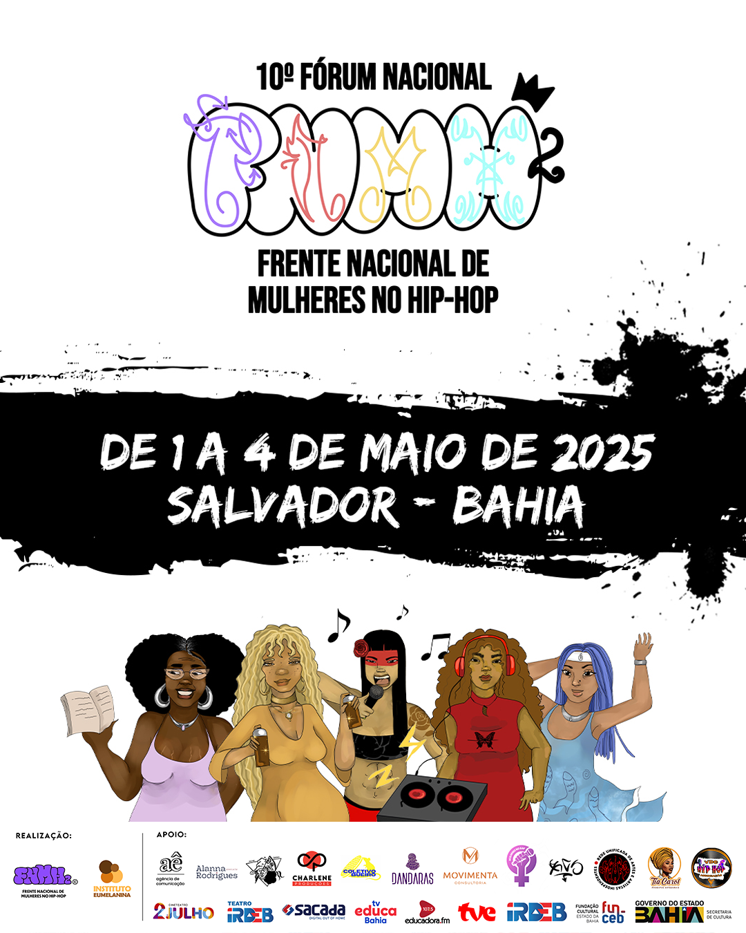 O evento, em sua décima edição, reunirá durante 4 dias artistas, produtoras, MCs, DJs, BGirls, grafiteiras, profissionais do ramo, ativistas e outras mulheres que fazem parte da cultura do Hip-Hop de todas as regiões do país, buscando criar espaços de reflexão sobre políticas públicas voltadas para a equidade de gênero e o fortalecimento da presença feminina no universo do Hip-Hop, sendo também uma plataforma de valorização das mulheres negras e periféricas.