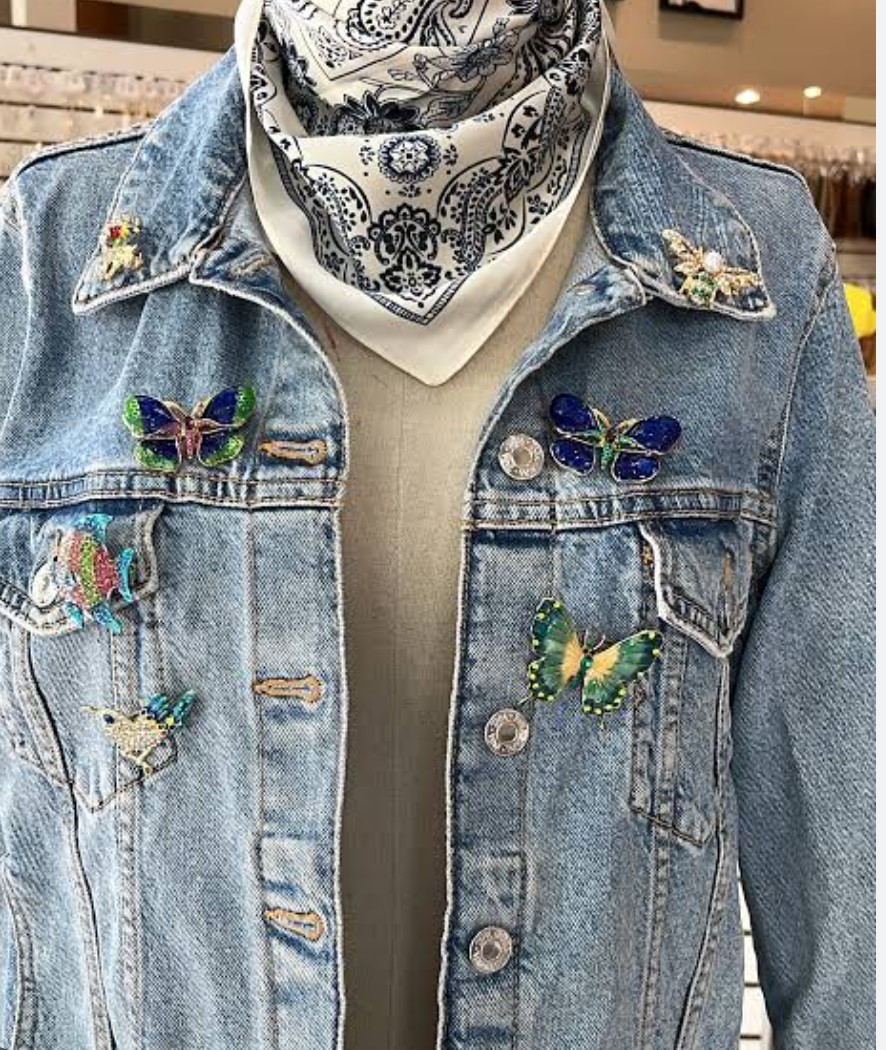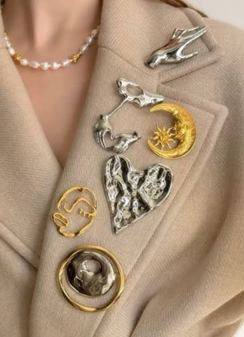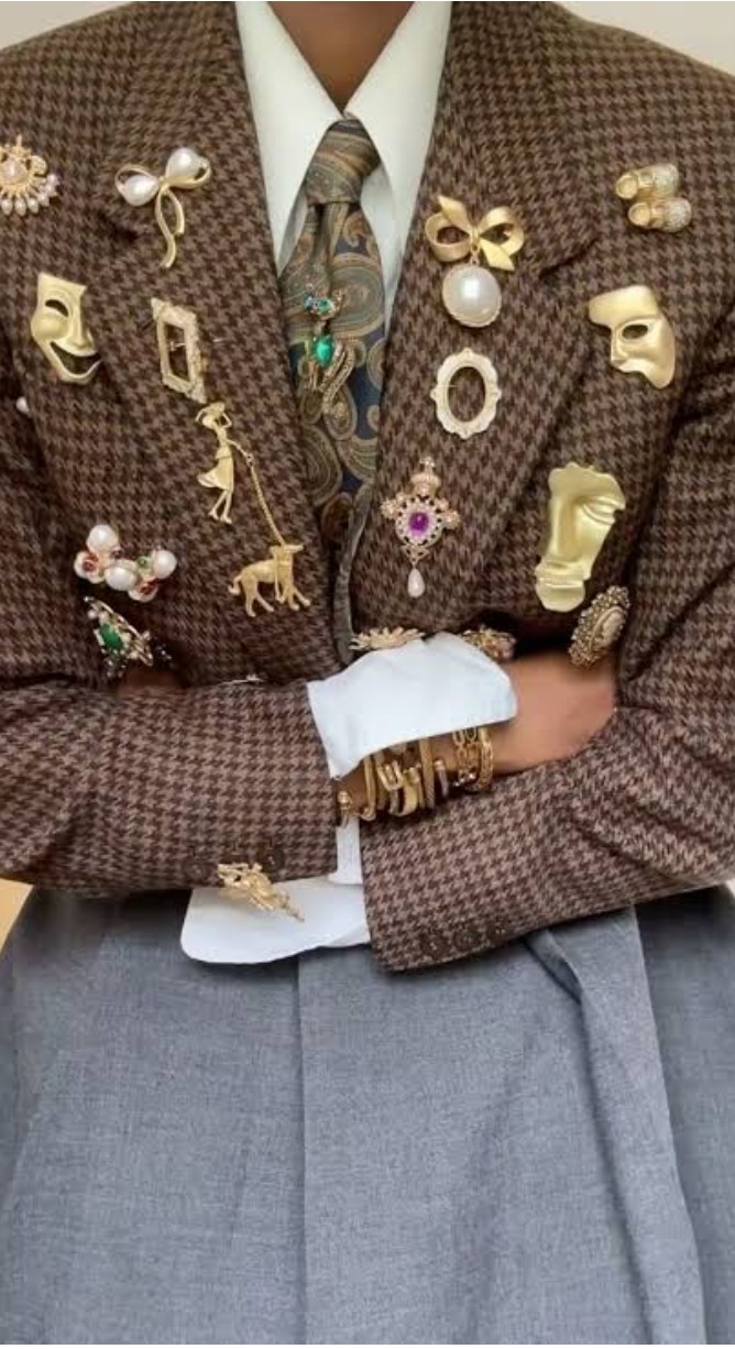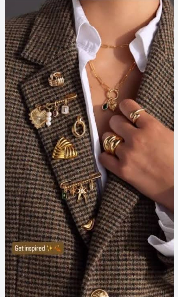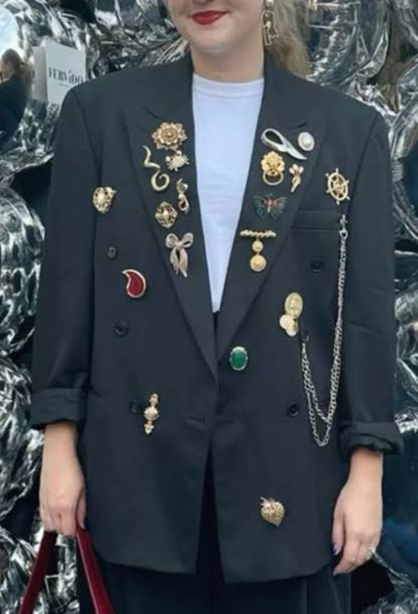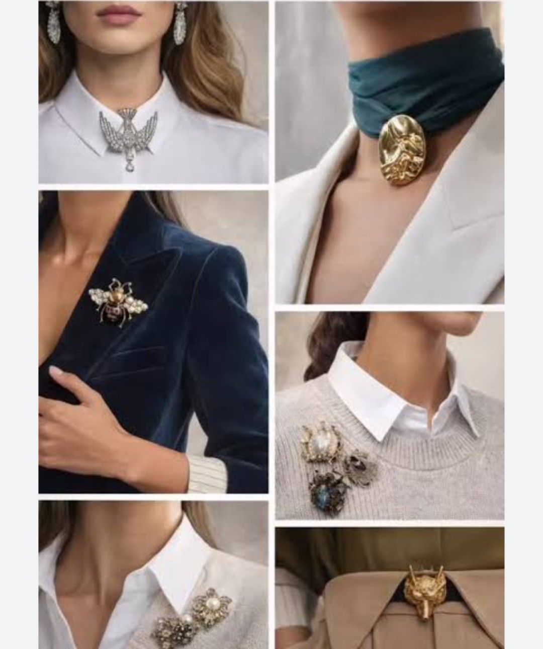 Broches , sim , broches desde do tempo de 40 até o tempo atual . Momento Esse de Vocês irem no Guarda-roupa da Avó, Tia , Bisa , Mãe e fazer um apanhado e usar de várias formas como trouxe nas Fotos.