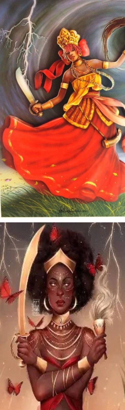 Mas sua força está na palavra: quando provocada, pode lançar pragas que carregam o peso da ancestralidade. Essa versão de Iansã nos lembra que o silêncio também é poder, e que a serenidade pode esconder uma energia latente, pronta para se manifestar quando necessário.